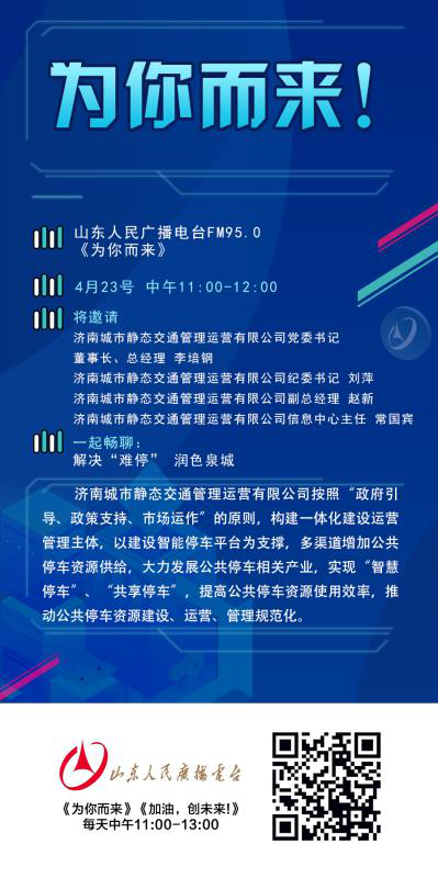 4月23日上午,公司黨委書記 、董事長,總經(jīng)理李培鋼;監(jiān)事會(huì)主席、紀(jì)委書記劉萍;副總經(jīng)理趙新;信息中心主任常國賓做客山東人民廣播電臺《為你而來》節(jié)目。就“舜耕智能停車場投入使用可以給大家停車帶來怎樣的便利?智能停車場有什么特點(diǎn)?停取車都有哪些步驟?都有哪些人性化服務(wù)、讓利于民的措施?收費(fèi)標(biāo)準(zhǔn)是什么?”等大家關(guān)心的問題,在節(jié)目中作了詳細(xì)的解答。