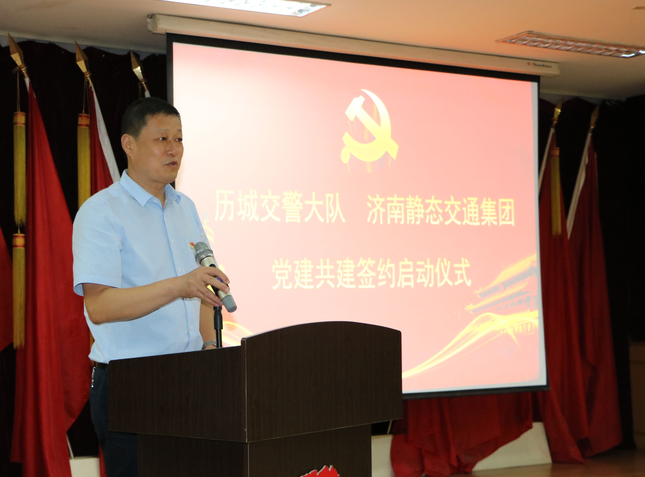 簽約儀式上,濟(jì)南靜態(tài)交通集團(tuán)李培鋼董事長(zhǎng)與歷城交警大隊(duì)孫如彬大隊(duì)長(zhǎng)與共同簽署了《警企黨建共建協(xié)議書》,正式成為黨建共建單位。