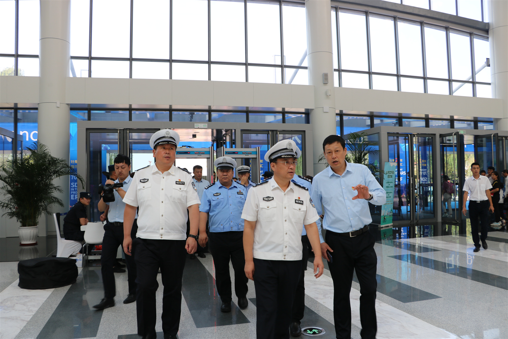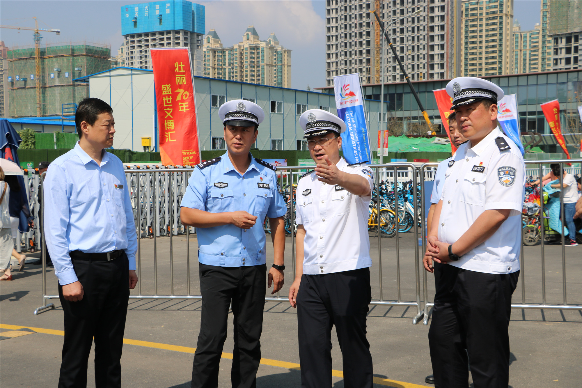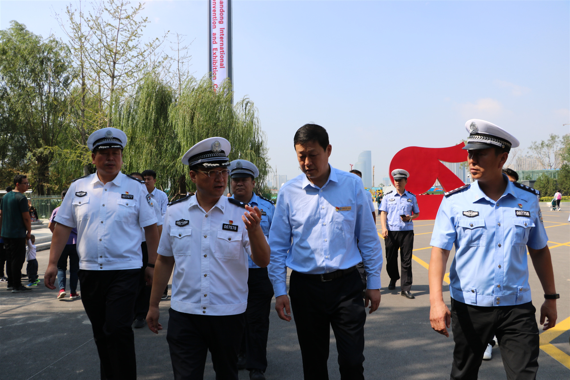 9月22日,為應(yīng)對(duì)文博會(huì)交通壓力,濟(jì)南市公安局交警支隊(duì)支隊(duì)長(zhǎng)曹鳳陽(yáng)、副支隊(duì)長(zhǎng)孫小鵬一行今天來(lái)到第八屆山東文博會(huì)現(xiàn)場(chǎng)調(diào)研靜態(tài)停車(chē)工作。